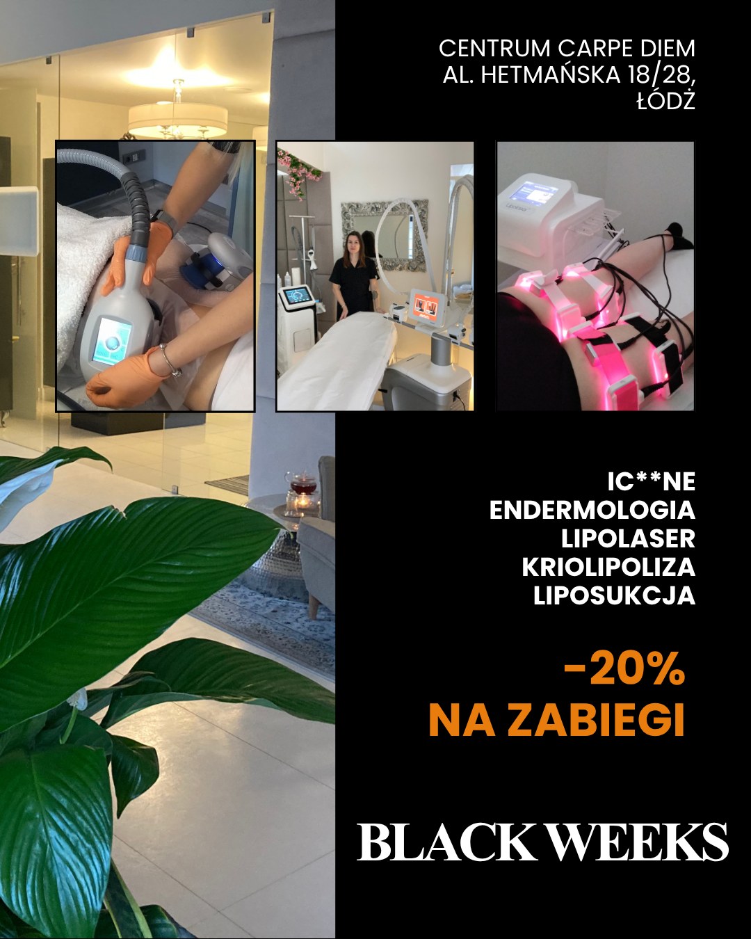 Z okazji BLACK WEEKS -20% rabatu na zabiegi modelujące sylwetkę. Promocja obejmuje zabiegi tj. – Ic**ne – endermologia – liposukcja – lipolaser – kriolipoliza W listopadzie również -15% na zabiegi twarzy, szyi i dekoltu: – z użyciem kwasów, – pielęgnacyjne – IPL Zadzwoń i umów się na zabieg 604 613 000 www.centrumcarpediem.pl Carpe Diem Łódź Read more about BLACK WEEKS[…]